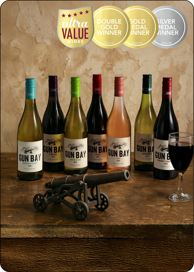 Inspired by Cape Town’s Noon Gun tradition, GUN BAY delivers bold, fruit-driven wines full of energy and everyday enjoyment.